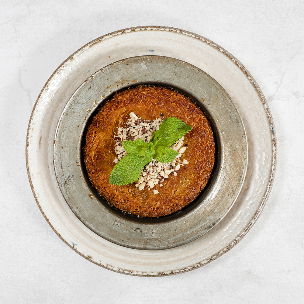 Zapiekany Kadayıf z miodem, orzechami i serem Tureckim (Kaymak) *Czas oczekiwania ok. 15-20 minut. Baked kadayıf with honey, nuts and (Kaymak) cream. *Waiting time 15-20 minutes