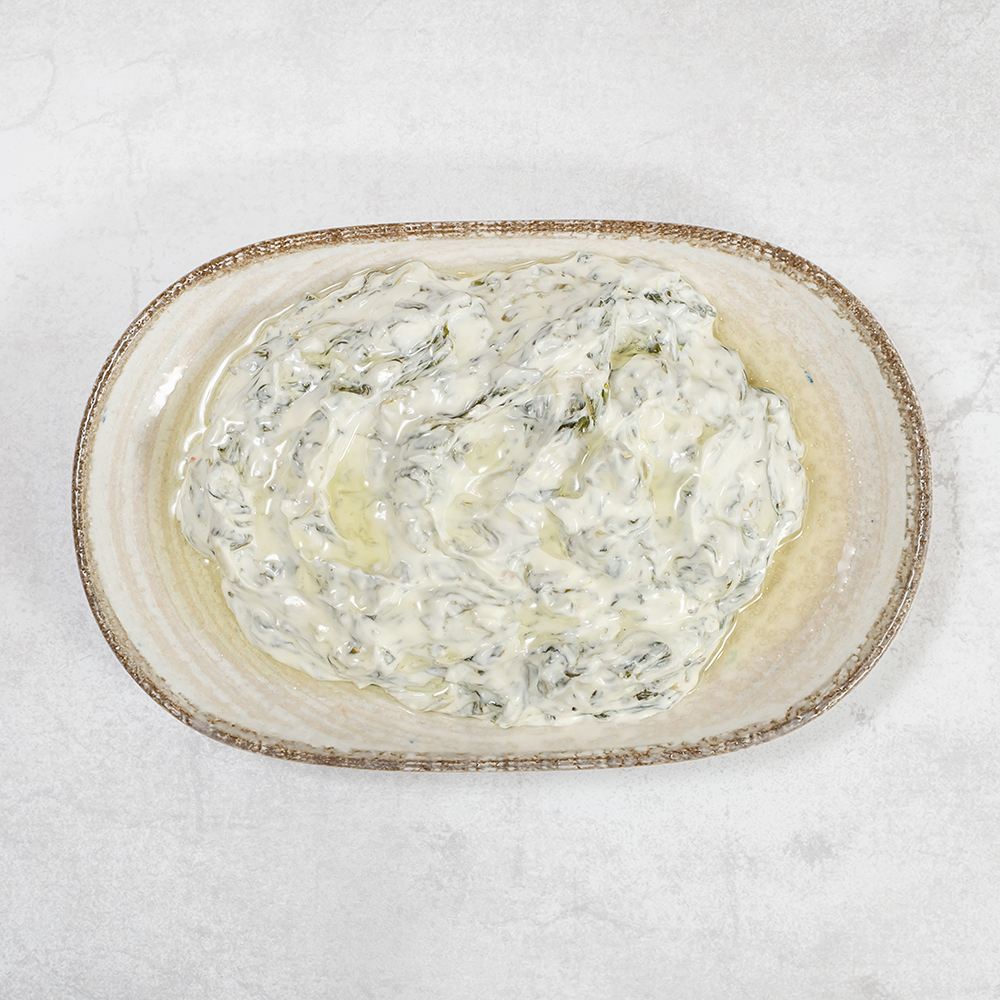 Szpinak duszony z cebulą i czosnkiem w sosie jogurtowym Sauteed spinach and onion with garlic-yogurt sauce